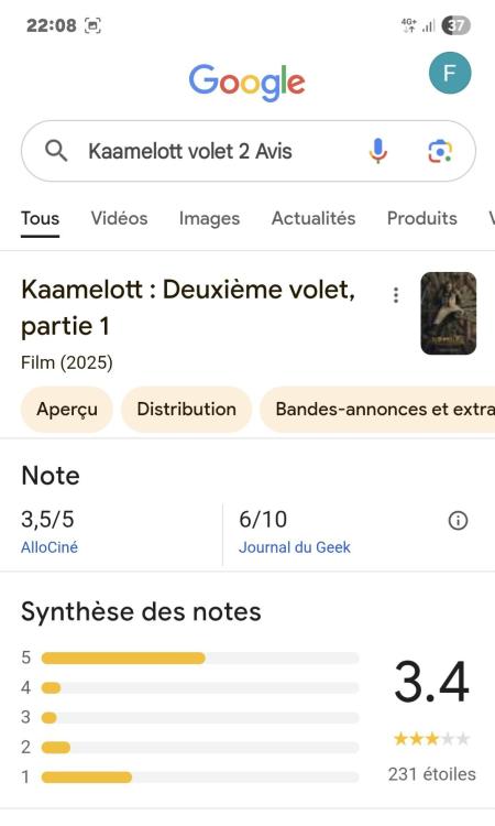Babouille Posté(e) vendredi à 19:24 Posté(e) vendredi à 19:24 Kaamelott. J'avais moyennement aimé KV1. J'ai adoré KV2! Je trouve que les répliques sont drôles, on retrouve plus "l'esprit" de la série. Les décors sont époustouflants, c'est très bien filmé et la musique est superbe, calée au millimètre près comme sait le faire Alexandre Astier. Je n'ai pas vu le temps passer!!! Vivement KV2 2ème partie!!! 1