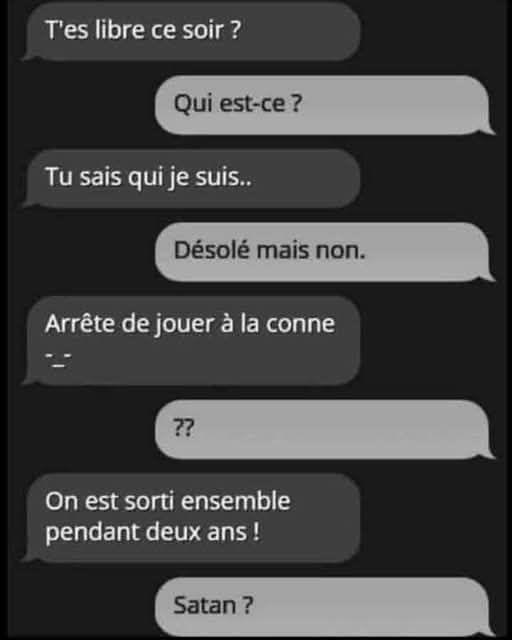 Torque Posté(e) jeudi à 13:19 Auteur Posté(e) jeudi à 13:19 Un paysan s'arrête au garage du coin pour faire réparer sa camionnette. Le garagiste ne peut pas le faire immédiatement et doit garder la camionnette. Le paysan se dit alors qu'il n'habite pas loin et qu'il va rentrer à pied. Sur le chemin du retour, il s'arrête dans une boutique où il achète un seau et une boîte de 5 kg de peinture. Puis il s'arrête dans une autre boutique et prend deux poules et une oie. Mais, arrivé laborieusement dehors, il a un problème : comment porter tous ses achats jusqu'à la maison ? Pendant qu'il se gratte la tête, une petite vieille s'approche de lui et lui dit qu'elle est perdue. Elle lui demande : "Pouvez-vous me dire comment aller au 9 Rue du Buisson ?" Le paysan lui dit : "Eh bien, en fait, ma ferme est tout près de cette maison. Je me mettrais bien en route, mais je n'arrive pas à porter tout ceci. La vieille dame suggère : "Pourquoi ne mettez-vous pas la boîte de peinture dans le seau. Portez le seau d'une main, mettez une poule sous chaque bras et portez l'oie dans l'autre main ?" "Merci bien", dit-il, et il se mit en route accompagnant la vieille dame. En cours de route, il dit : "Prenons mon raccourci et descendons par ce sentier. Nous y serons en un rien de temps." La petite vieille le regarde attentivement et dit : "Je suis une veuve sans personne pour me défendre... Qui me dit que quand nous serons dans le sentier vous n'allez pas me coincer contre un mur, retrousser ma jupe et me faire Dieu sait quoi ?" Le paysan dit : "Cré vingt dieux, ma petite dame, je porte un seau, une boîte de 5 kg de peinture, deux poules et une oie. Comment diable pourrais-je vous coincer contre le mur et faire ça ?" La vieille dame répondit : "Posez l'oie, recouvrez-la avec le seau, mettez la boîte de peinture sur le seau, et je tiendrai les poules" !!!!!! 1